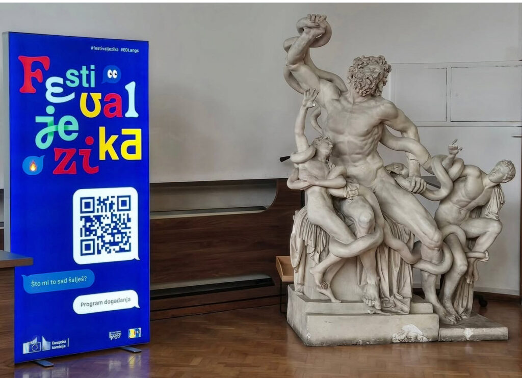 U sklopu proslave Europskoga dana jezika u petak 26. rujna otvoren je Festival jezika na Filozofskom fakultetu u Zagrebu. Festival je okupio jezične stručnjake, književnike, prevoditelje te predstavnike veleposlanstva i kulturnih ustanova. Učenike mnogobrojnih osnovnih i srednjih škola dočekali su raznovrsni zanimljivi sadržaji prezentirani na mnogim europskim jezicima. Naši su učenici pozorno poslušali predavanje o grčkoj mitologiji u stripu, razlikama i sličnostima između hrvatskoga i novogrčkoga jezika te su se okušali u kvizu znanja o antičkoj Grčkoj i Rimu. (Vesna Lalić Pušić)