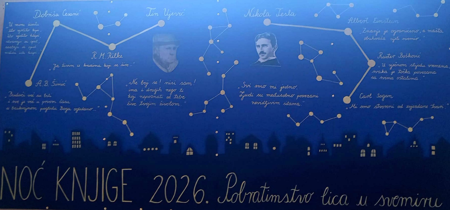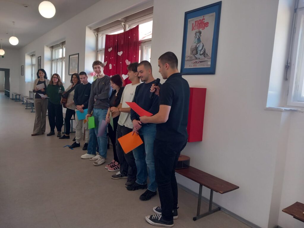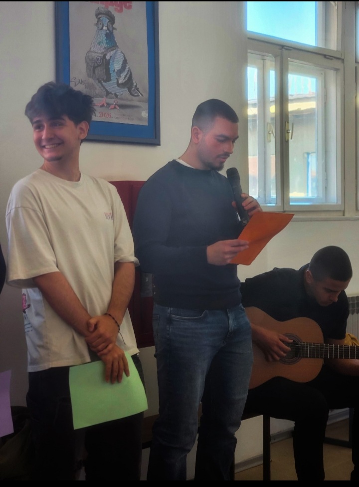 Učenici NKG-a obilježili su ovogodišnju Noć knjige interpretacijom stihova koji slave snagu zajedništva i duhovne povezanosti. Pod vodstvom svojih mentorica (Santrić Lukinić i Vrekalo), učenici trećih i četvrtih razreda recitirali su stihove Ujevića, Cesarića, Pupačića, Šimića, Lorce i Rilkea. Ponosni smo na njihovu hrabrost, međusobnu podršku i emotivnu izvedbu kojima su nas podsjetili da u svijetu umjetnosti nismo usamljeni. Pjesnički program dodatno su obogatile naše profesorice (Batistić Fačini, Bobok i Catinelli) vokalno-instrumentalnom izvedbom stihova velikoga Tina Ujevića.